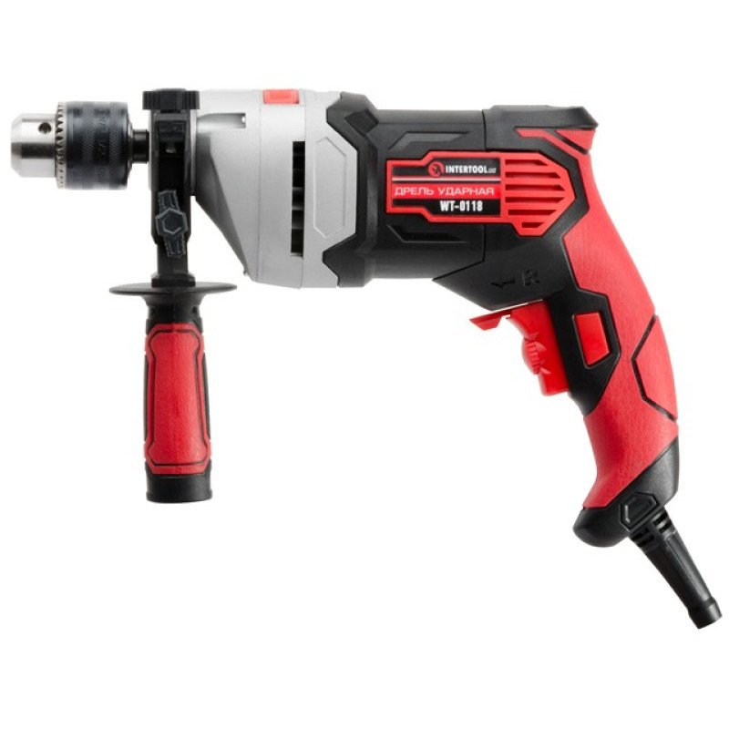 Дриль ударний 800Вт, 0-2900об/хв, 1.5-13мм, метал. корпус редуктора INTERTOOL WT-0118
