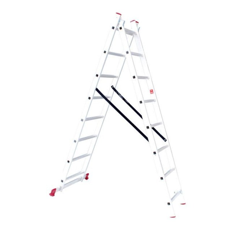 Сходи алюмінієві 2-х секційні універсальні розкладні 2x8 ступ. 3,69 м INTERTOOL LT-0208