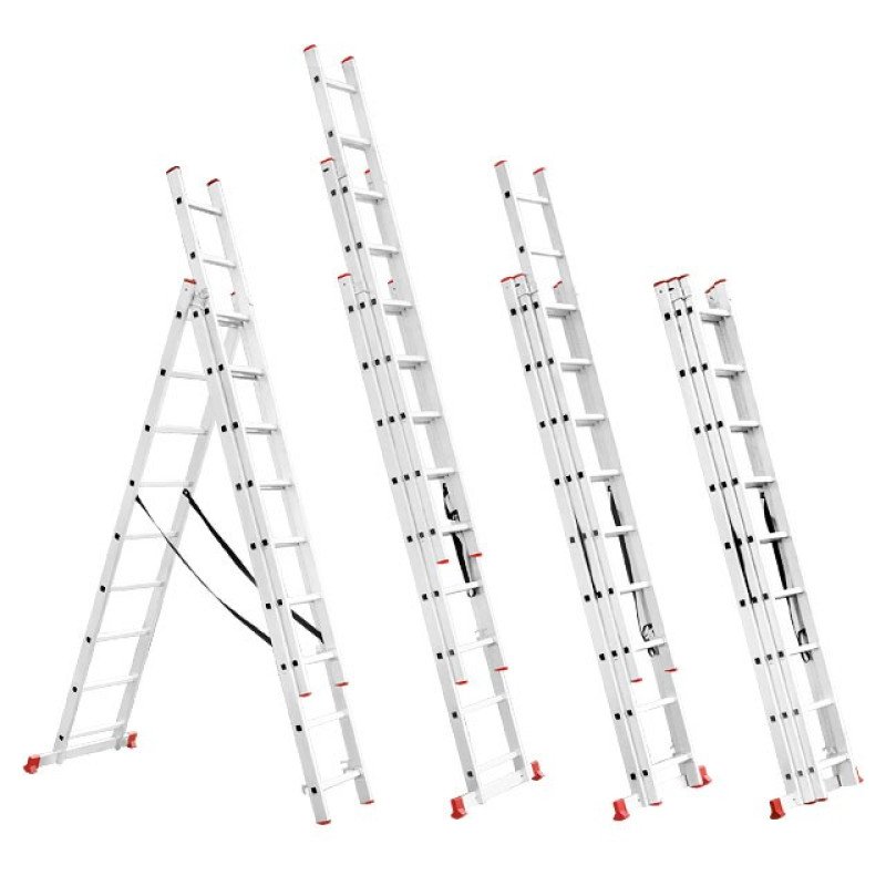 Сходи алюмінієві 3-х секційні універсальні розкладні 3x9 ступ. 5,93 м INTERTOOL LT-0309