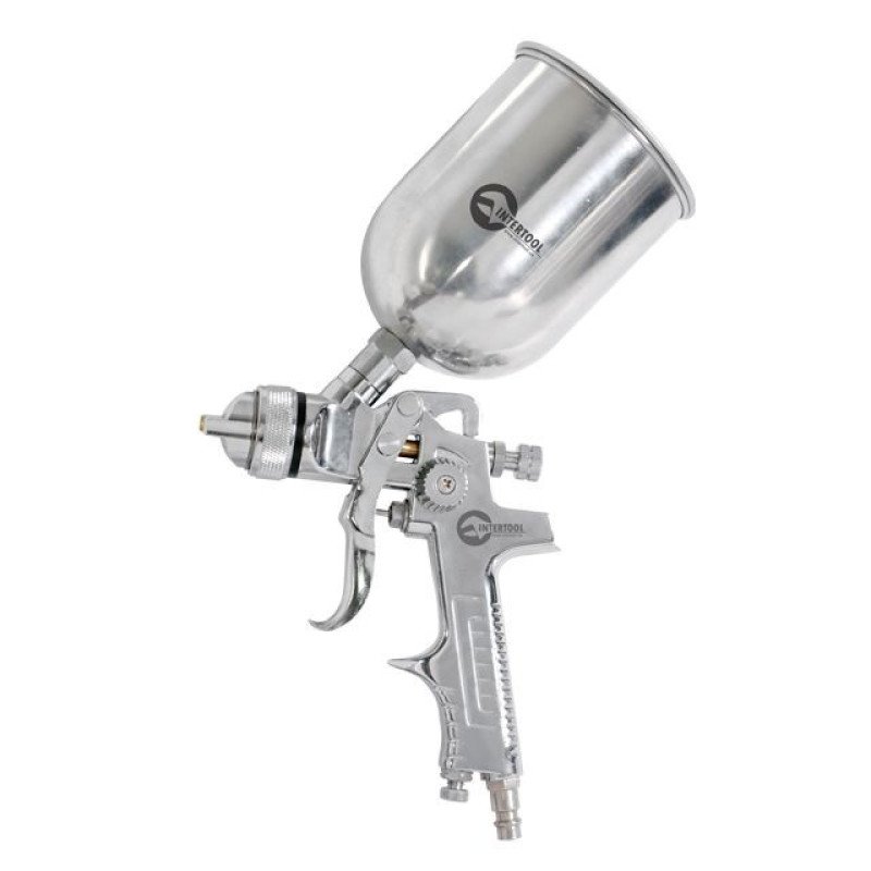 Краскопульт пневматический HVLP, форсунка 1.4мм, верхний металлический бачок 600мл., 3бар INTERTOOL PT-0109
