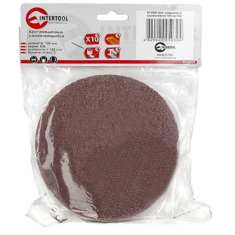 Круг наждачный самоклеющийся 125 мм, К36, уп. 10 ед. INTERTOOL BT-0503