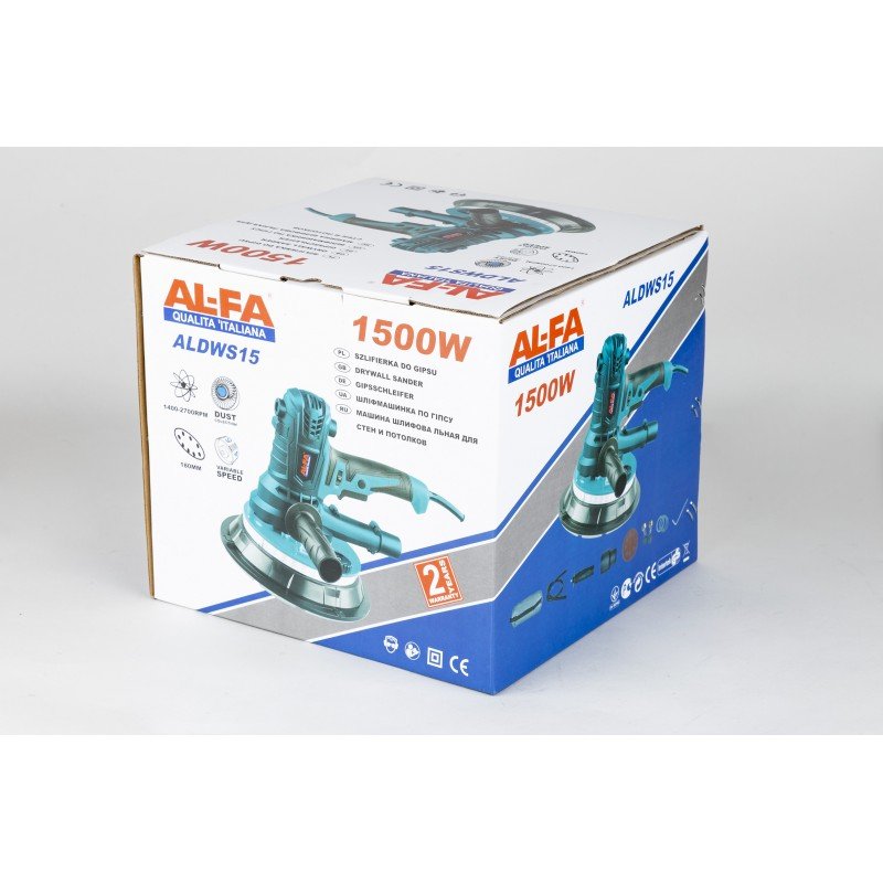 Шліфмашинка для стін та стелі ALFA ALDWS15 1500 Вт. з діодною підсвіткою – призначена для шліфування гіпсових і штукатурних поверхонь та ін. необхідна для кожного спеціаліста з внутрішньої обробки. Шліфмашинка значно полегшує і прискорює роботу, особливо в поєднанні з роботою традиційних інструментів. Спеціалізований спектр застосування робить її надзвичайно корисним пристроєм. Завдяки високій продуктивності і надійності вона здатна виконувати різного роду завдання, як в домашніх або виробничих умовах, так і при виїзді на робочий об’єкт.