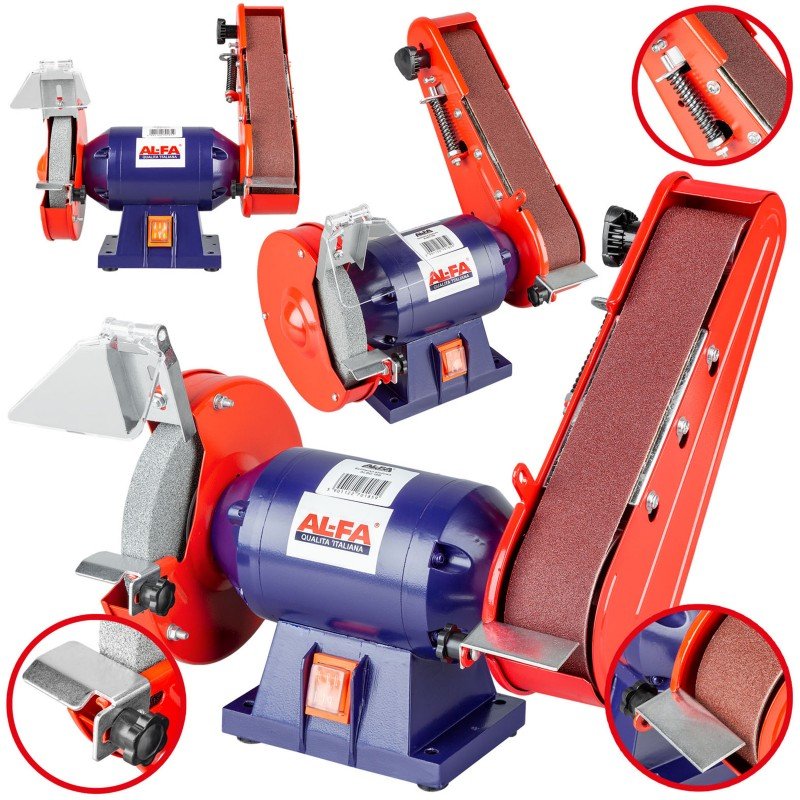 Точило дисково-стрічкове (гріндер) 150 мм. ALFA ALBG18B 1850 Вт. – призначене для заточування, вирівнювання та шліфування металевого інструменту та інших виробів. Вузькоспеціалізований спектр застосування робить його надзвичайно корисним пристроєм. Завдяки високій продуктивності і надійності воно здатне виконувати різного роду завдання, як в домашніх або виробничих умовах, так і при виїзді на робочий об’єкт.